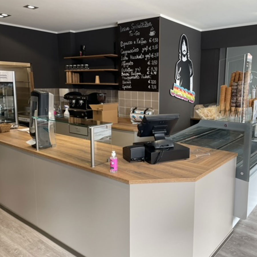 In unserer Filiale pflegen wir die Atmosphäre von Jessas Eis, indem wir das beste hausgemachte Eis anbieten, während wir uns auch an den Rhythmus der Stadt mittels To-Go Angebot anpassen. Hier finden Sie die leckersten Kaffees, Frühstücksoptionen, frischgebackene Cornettos, Milchshakes und eine grosse Auswahl an Getränken. Wir freuen uns auf Ihren Besuch und erwarten Sie mit einem Lächeln.